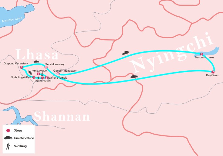 After viewing the historical and cultural highlights of Lhasa, you will head to Nyingchi to appreciate the wonderful views, such as the Basumtso Lake and the Great Cypress Nature Reserve.