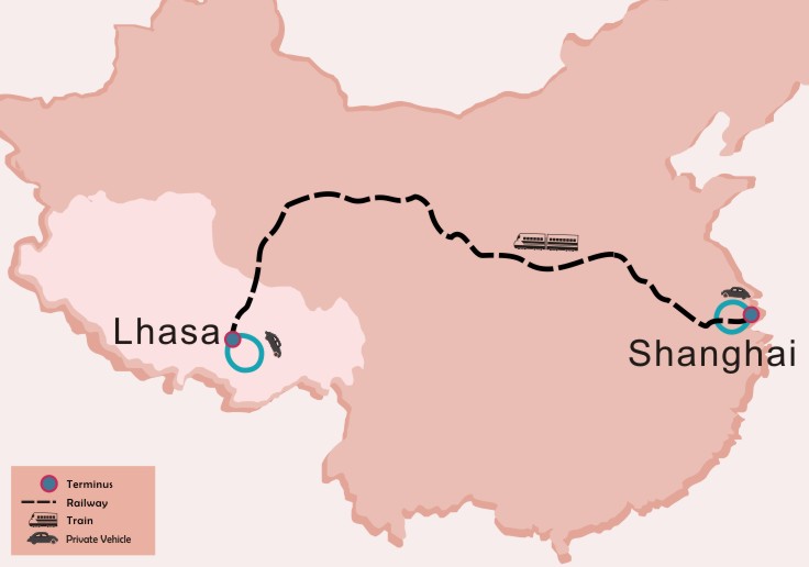 Tonight, you will be driven to Shanghai Railway Station to take your train to Lhasa. Train T164 starts at about 19:36 from Shanghai and arrive at 20:15 on the third day, totally about 48 hours and 39 minutes.
