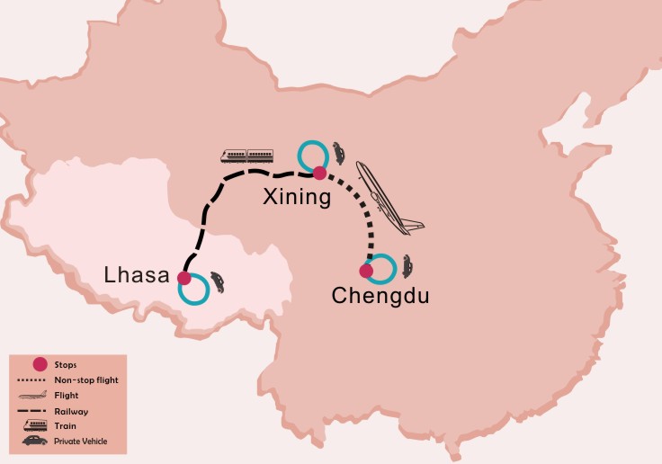 Tour from Chengdu to Xining by flight and then take Tibet train to Lhasa will be your best choice to tour Tibet from Chengdu. You will suffer less hardship and be more comfortable.