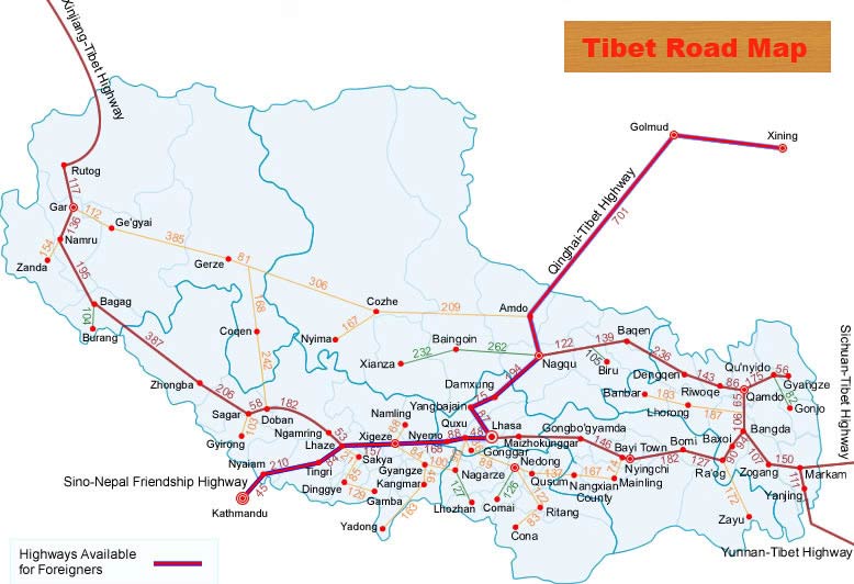 The traffic in Tibet region is not convenient as in other cities of mainland China. Except the Qinghai-Tibet railway, there is a highway from Xining, Qinghai to Kathmandu, Nepal through Lhasa, Tibet.